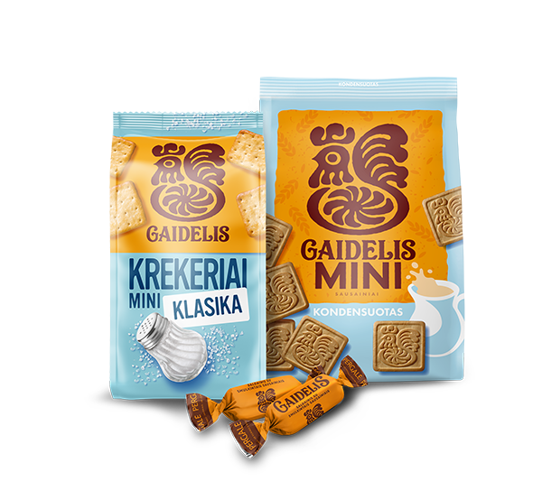 - 1 dėžė „MINI GAIDELIO“ sausainių „GAIDELIS KONDENSUOTAS“ su saldintu sutirštintu pienu (dėžėje 10 pakelių)